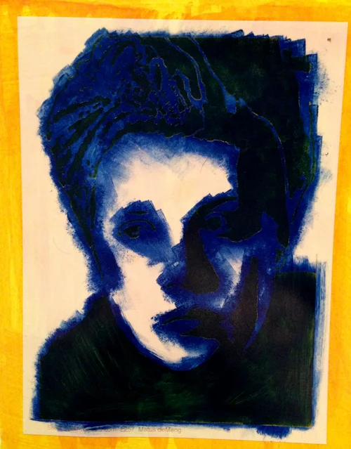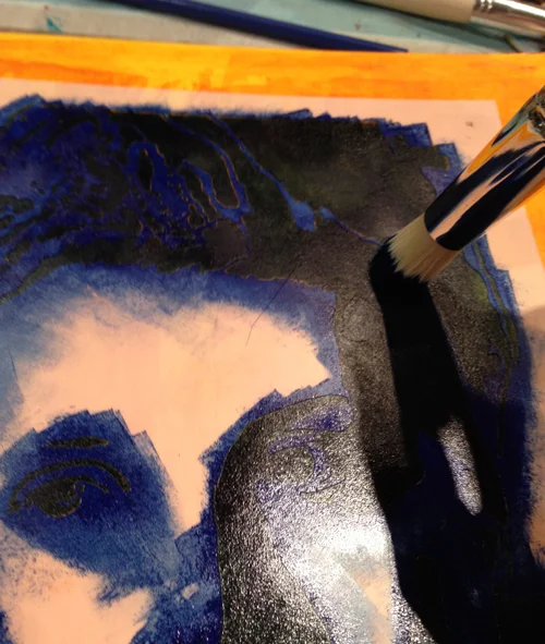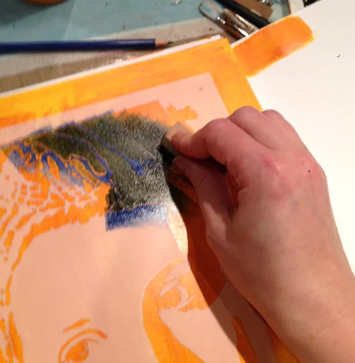 Now you are ready to add the light plate. Remember the registration marks when you place the second stencil. Now repeat the previous steps using your lightest colour paint.