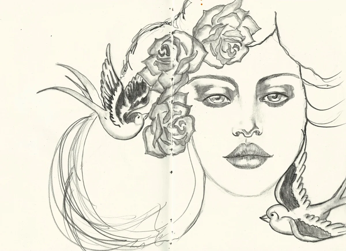 Place your stencil on your page, make sure you leave plenty of room around it to add more details later. (I am using the Mystique Stencil here).
