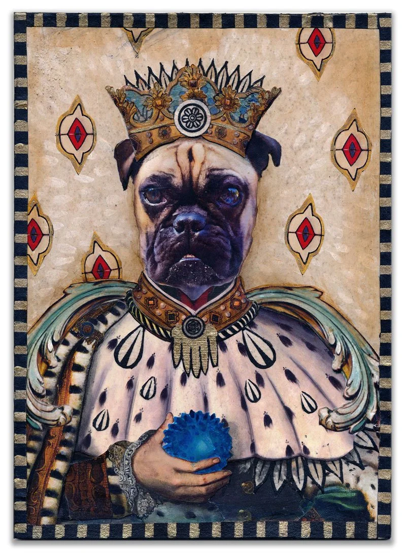 Stately dogs and cats step into the frame, reinterpreted with the same humour, charm and personality that our fur babies bring to our families. Each portrait balances the refined and downright silly, transforming these once vintage treasures into playful explorations of character and whimsy.